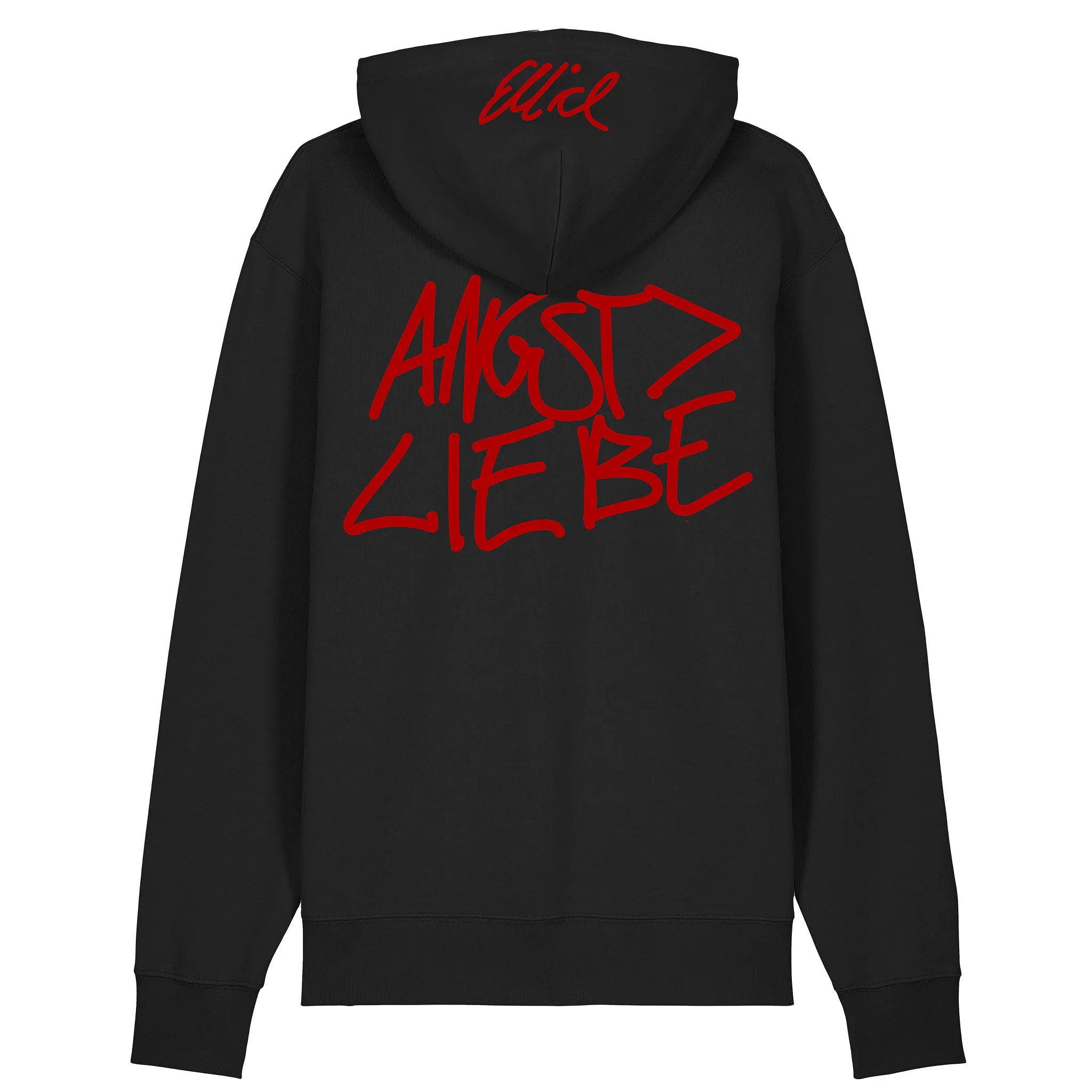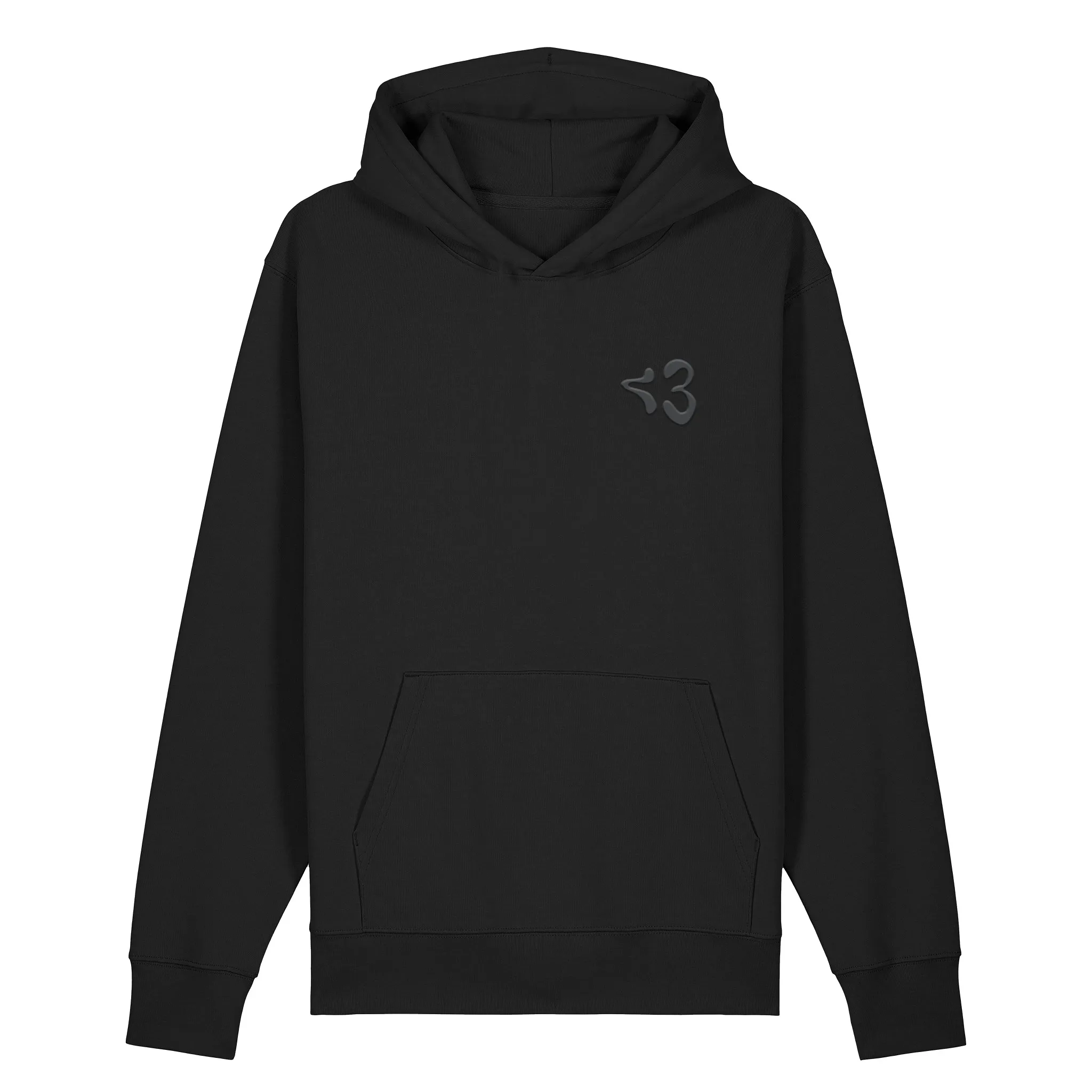 Hoodie mit gesticktem Herz vorne, Print auf dem Rücken und der Kapuze
